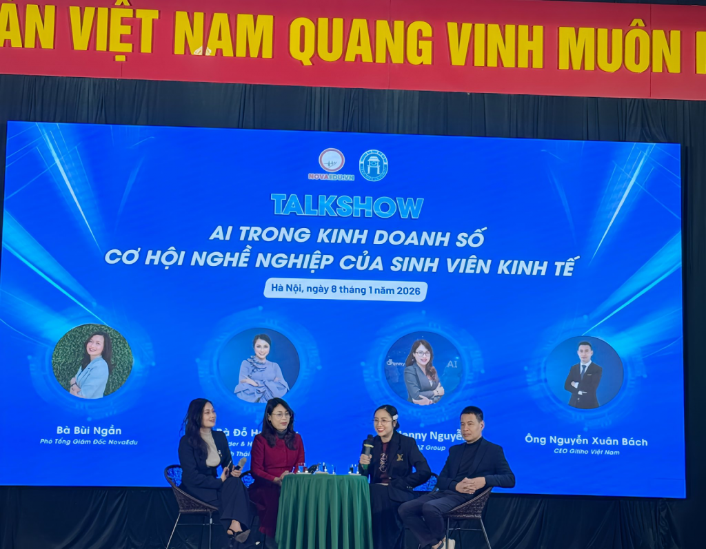 Phiên talkshow chuyên đề với nhà điều phối chiến lược Đỗ Hương Ly và các diễn giả doanh nhân chia sẻ về AI trong kinh doanh số.
