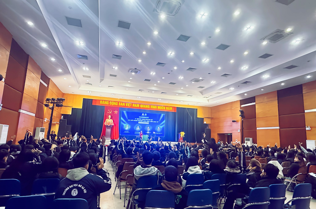 Sáng ngày 08/01/2026, chương trình Khai tâm môn học “Phát triển kỹ năng nghề nghiệp” với chủ đề “AI trong kinh doanh số – Cơ hội nghề nghiệp cho sinh viên Kinh tế” đã diễn ra tại Trung tâm Văn hóa – Thông tin và Thể thao phường Bạch Mai, thu hút gần 360 sinh viên năm hai Khoa Kinh tế – Trường Đại học Mở Hà Nội tham dự.